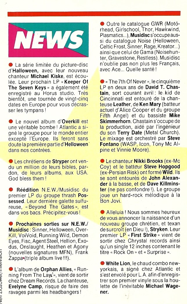 Vous trouverez ici d'anciens articles spécialisés de la presse Rock et Hard Rock des années 80. Du premier Enfer Magazine d’avril 1983 à Kerrang ! en passant par Hard Rock Magazine, Metal Attack, Hit Parader (aux USA), Best et Rock & Folk; ainsi que des articles et des interviews que j'ai réalisés ces dernières années. Only Metal rules in Hell!!! Lionel/Born666 (auteur du livre "Confessions Backstage" sorti chez Camion Blanc)